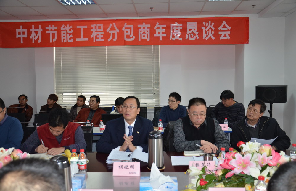 2011年12月29日,中材節能工程分包商第一屆年度懇談會在公司2112會議室成功召開。本次會議由工程部牽頭,邀請了與中材節能有著長期良好合作關系的建安分包商參加。胡也明總裁、葛立武副總裁、魏文華副總裁出席會議并作重要講話,公司工程部、安監部、投資部、技術部、采購部、費控部、后期服務部主要負責人參會。