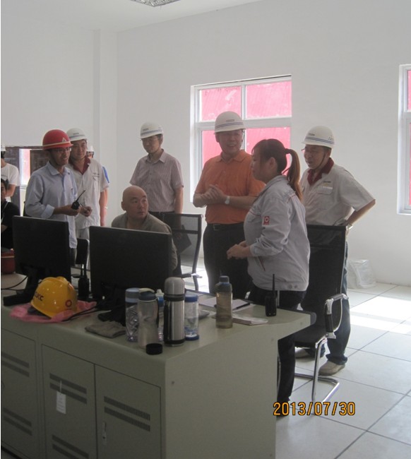 7月30日上午9時(shí),夏日炎炎驕陽(yáng)似火,總裁胡也明來(lái)到中聯(lián)美景水泥有限公司4000t/d水泥熟料生產(chǎn)線配套余熱發(fā)電項(xiàng)目建設(shè)工地,深入到循環(huán)水、窯頭鍋爐、窯尾鍋爐及汽輪機(jī)房施工區(qū)域認(rèn)真查看了現(xiàn)場(chǎng)施工情況,并對(duì)現(xiàn)場(chǎng)中存在的安全問(wèn)題進(jìn)行了指正。在汽機(jī)控制室,胡總仔細(xì)詢(xún)問(wèn)了電站操作人員的日常工作、學(xué)習(xí)情況,并向施工、調(diào)試人員了解設(shè)備安裝和系統(tǒng)調(diào)試的進(jìn)展。