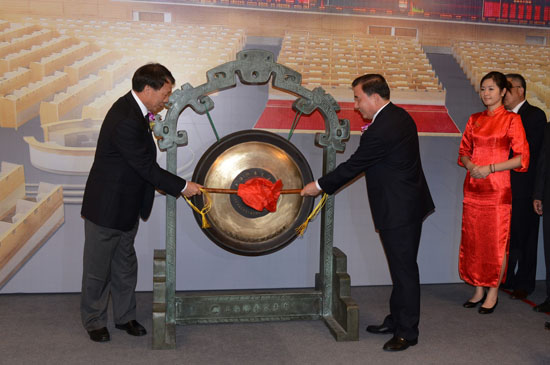 集團董事長劉志江(右)與天津市政府副秘書長袁樹謙共同為中材節能上市敲鑼