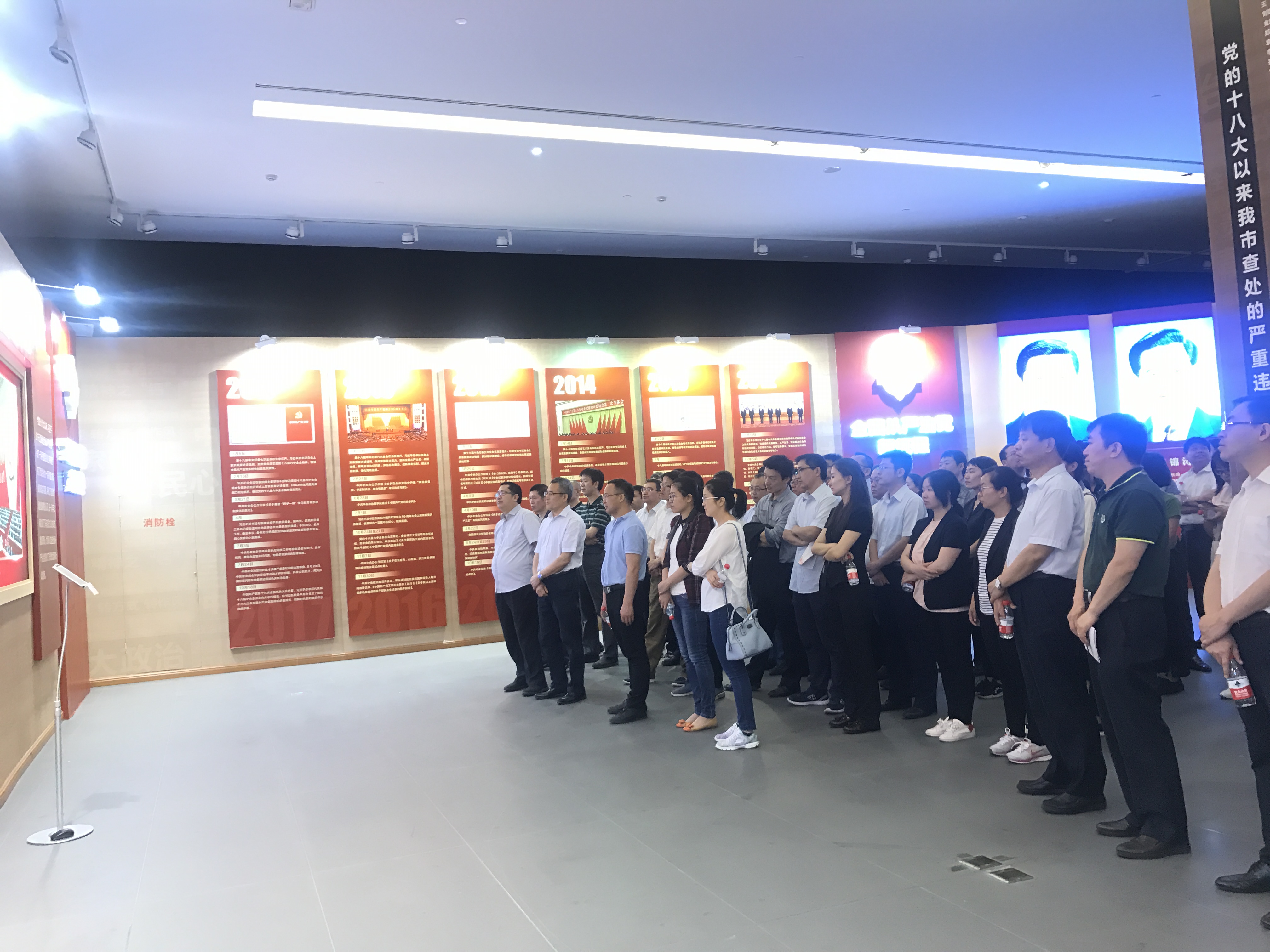 在講解員的帶領(lǐng)下,大家分別參觀了序廳、成果廳、警示廳和尾廳。成果廳集中展示了黨中央推進全面從嚴(yán)治黨的戰(zhàn)略部署和在天津市的具體實踐。警示廳深刻剖析了天津市查處的各類典型案例,通過圖文、視頻、實物等呈現(xiàn)形式,深層次展示了黨的十八大以來中央和天津市委關(guān)于黨風(fēng)廉政建設(shè)和反腐敗斗爭取得的偉大成就,用反面典型警示告誡,通過多形式多維度的觀感和視覺體驗,讓參加反腐倡廉警示教育的人員從思想和靈魂上接受了一次深刻的法紀(jì)教育洗禮,給人以心靈的感染和啟迪。