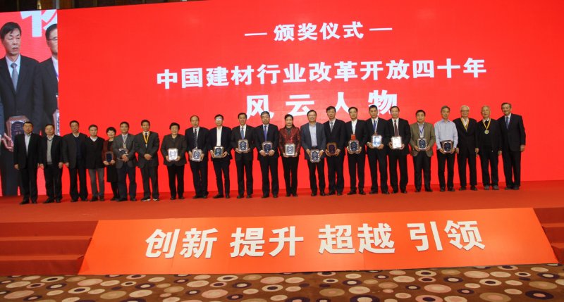 在過(guò)去40年改革與發(fā)展歷程中,中國(guó)建材行業(yè)取得了豐碩的成果,涌現(xiàn)出一批優(yōu)秀的建材企業(yè)和領(lǐng)導(dǎo)者,為嘉獎(jiǎng)他們?yōu)樾袠I(yè)改革創(chuàng)新與持續(xù)發(fā)展作出的突出貢獻(xiàn),原國(guó)家建材局局長(zhǎng)林漢雄、王燕謀、張人為,原國(guó)家建材副局長(zhǎng)、中國(guó)建材聯(lián)合會(huì)會(huì)長(zhǎng)喬龍德,原國(guó)家建材局副局長(zhǎng)雷前治、蔣明麟被評(píng)為“中國(guó)建材行業(yè)改革開(kāi)放四十年領(lǐng)袖人物”;中國(guó)建材集團(tuán)有限公司董事長(zhǎng)、黨委書(shū)記宋志平,安徽海螺集團(tuán)有限責(zé)任公司原董事長(zhǎng)郭文叁被評(píng)為“中國(guó)建材行業(yè)改革開(kāi)放四十年影響力人物”。中國(guó)建材集團(tuán)有限公司副董事長(zhǎng)李新華,中國(guó)建材集團(tuán)有限公司總工程師、中國(guó)建筑材料科學(xué)研究總院院長(zhǎng)姚燕,中材節(jié)能股份有限公司董事長(zhǎng)張奇等被評(píng)為“中國(guó)建材行業(yè)改革開(kāi)放四十年風(fēng)云人物”。