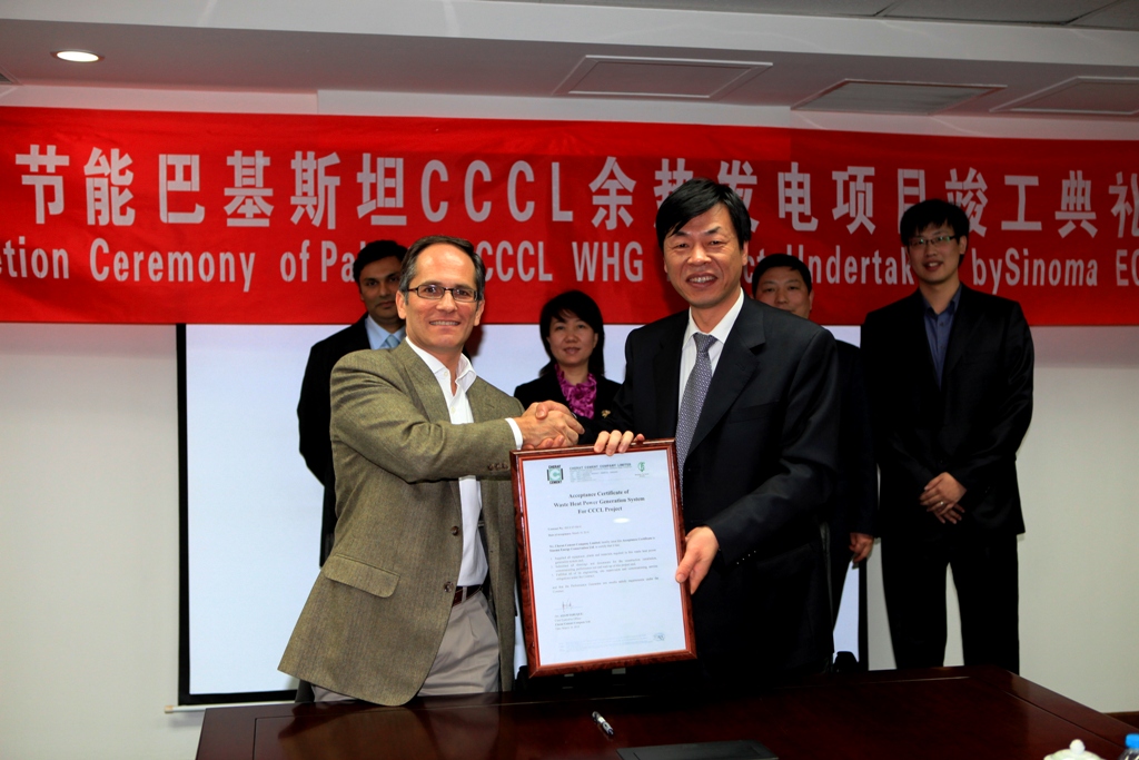 On April 20, 2010, Mr. Zhang Qi, Chairman of Sinoma Energy Conservation Ltd., on behalf of the company, took over the Factory Acceptance Certificate (FAC) for waste heat power plant project of Cherat Cement Co., Ltd. from Mr. Azam, CEO of Cherat Cement Co., Ltd. in Pakistan.
