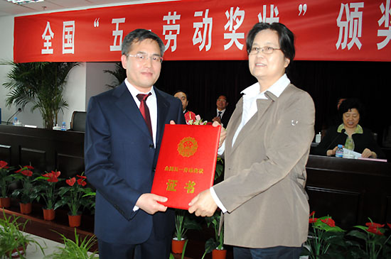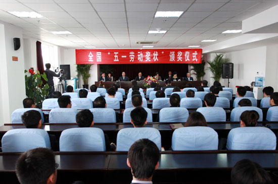April 28, 2011, Sinoma Energy conversation Ltd. won National Labor awards, the award ceremony held in Tianjin. Ms. Liu Haihua , the chairman of Chinese machinery and metallurgy building materials union , of National Federation of labor Unions, and Mr. Li Baokun, Xue hui , the leaders of Beichen district, together with Mr. Yu Shiliang and Ms. Zhang Jiang , the leaders of Sinoma group, and President Zhang Qi of Sinoma-EC attended the ceremony, the ceremony presided over by Mr. Zhang Jiang.