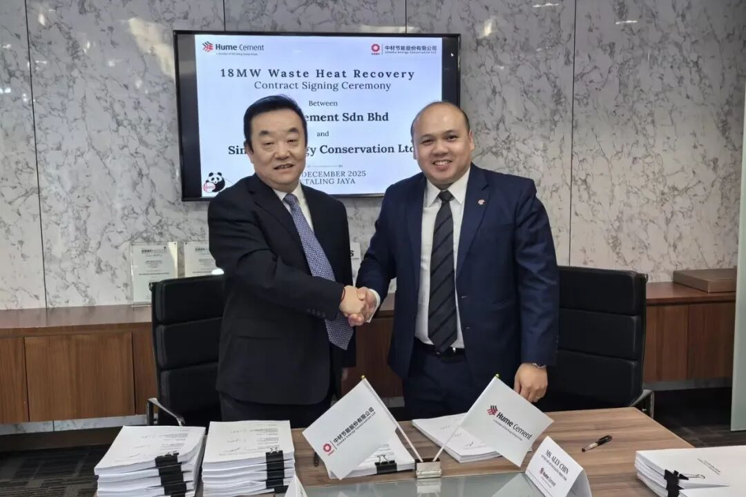 On 3rd December, Sinoma Energy Conservation Limited formally signed an 18MW waste heat power generation EPC contract with HUME Cement Berhad, a leading building materials company under Malaysia’s Hong Leong Group, in Kuala Lumpur.